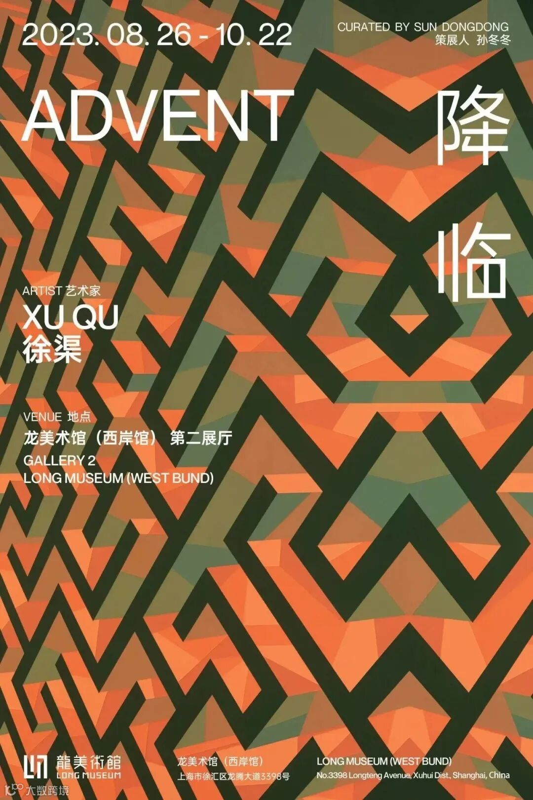2023年8月26日至10月22日,龙美术馆(西岸馆)将在第二展厅呈现艺术家徐渠首个美术馆个展“降临”,由策展人孙冬冬策展。此次展览与艺术家2023年新创作的大型装置《降临》同名,该作品也将在本次展览中与艺术家近年来创作的多组大型绘画、装置一同展出。