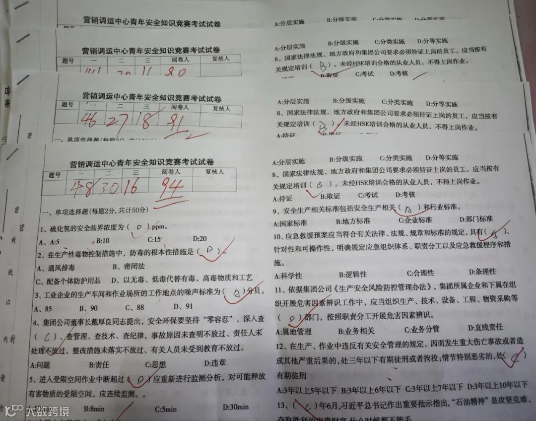 1月25日下午1点30分,在全体青工摩拳擦掌的期盼中,营销调运中心“立足岗位创一流、凝心聚力保安全”主题实践活动之青年安全知识竞赛和铁路运行图考试鸣锣开赛,19名青年员工参加本次考试。考试内容较多,时长两小时。这着实考验着每名青年员工对安全知识的掌握和对铁路图的熟悉程度。大家赛前精心准备考试全部合格,其中4人取得90分以上的好成绩。