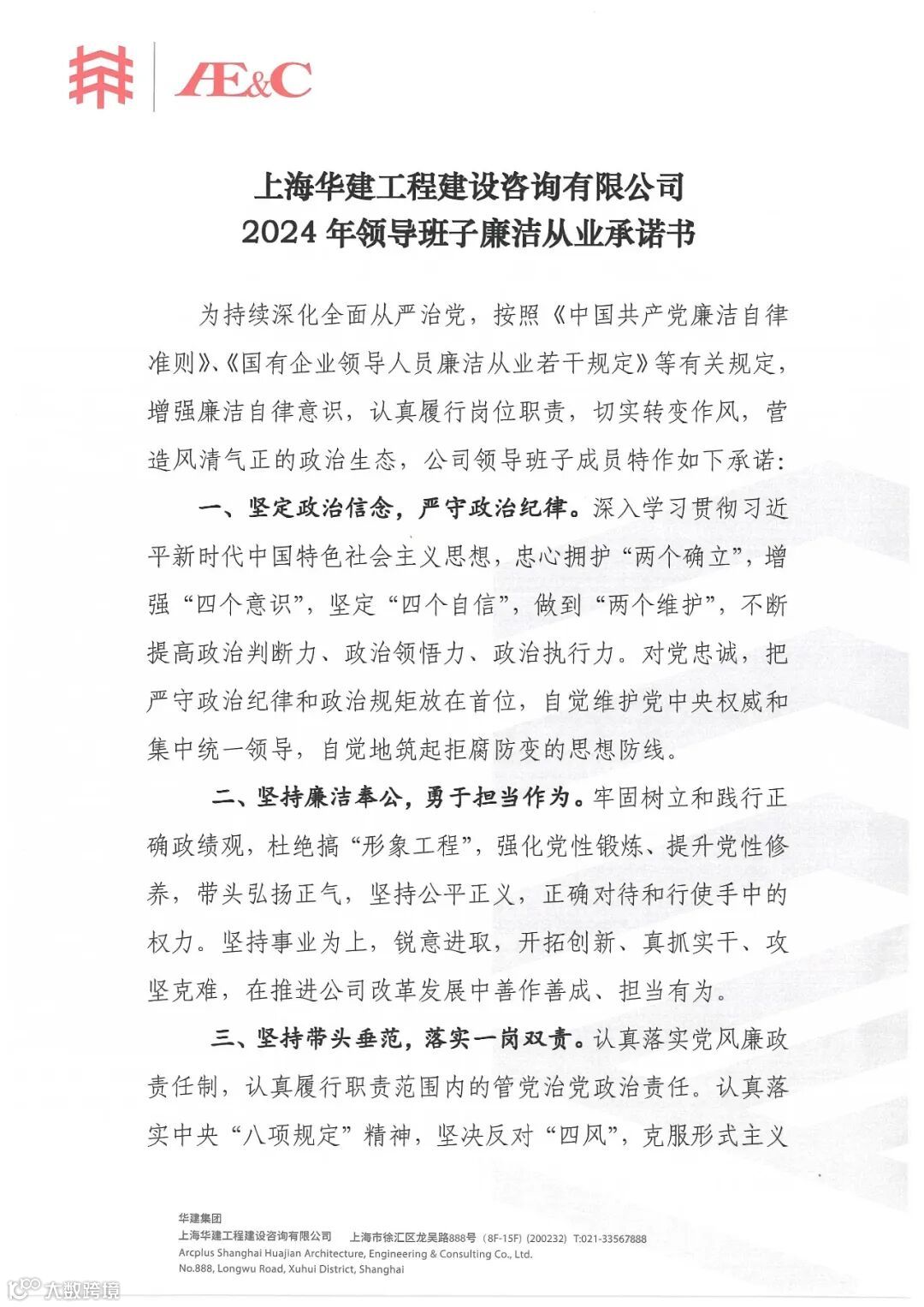 为全面贯彻党的二十大精神及中央对党风廉政、党纪教育学习的总部署、总要求。建设咨询领导班子共同签署了2024年度廉洁从业承诺书。