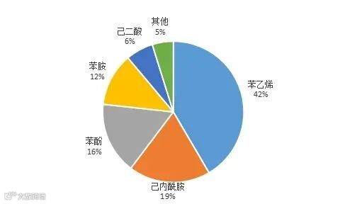 苯乙烯是下游最大消费领域,2024年苯乙烯的纯苯消费量为1216万吨,占比42%,己内酰胺、苯酚、苯胺、己二酸分别占比19%、16%、12%、6%。