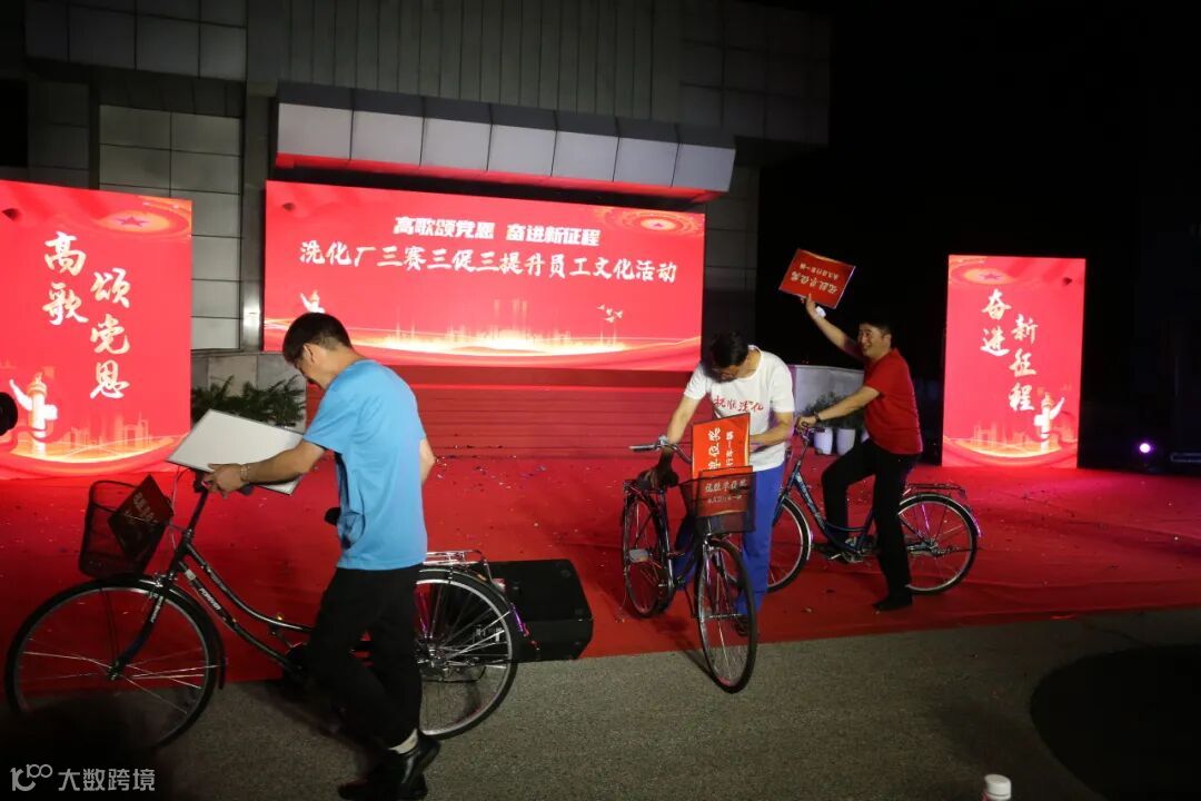 现场公司机关领导及洗化厂厂领导对优胜单位及最佳组织奖单位进行了颁奖,一台台永久自行车沿着洗化大院幸福的道路骑回工作岗位。
