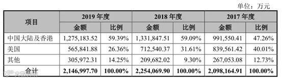 从公司地区收入占比来看,中国大陆及香港是中芯国际最大的收入来源。此外,由于当地客户业务调整,公司来自于美国的主营业务收入占比分别为 40.01%、31.61%及 26.36%,呈下降趋势,在这一定程度上减少了中美贸易战可能对公司业务造成的冲击。