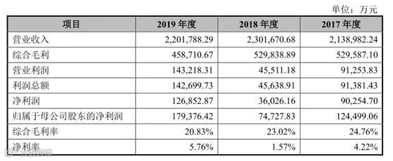 招股书数据显示,2017年-2019年,中芯国际营收分别为213.9亿元、230.17亿元、220.18亿元;同期对应的归母净利润分别为12.45亿元、7.47亿元、17.94亿元。