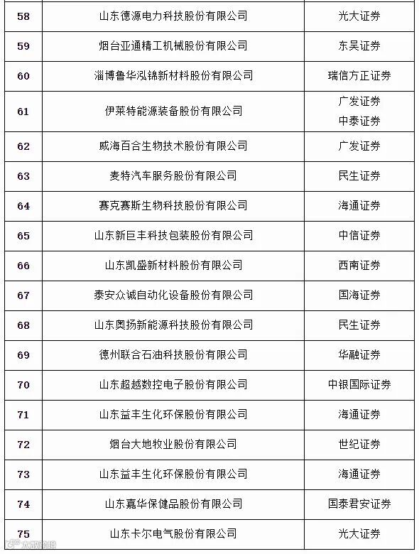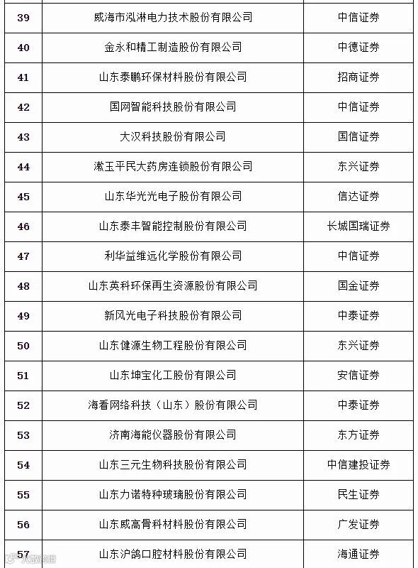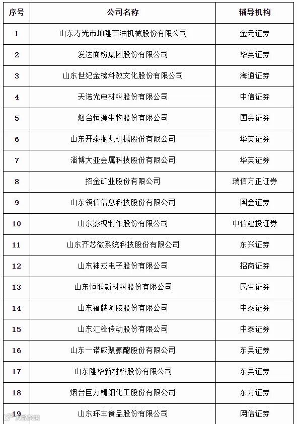 各地证监局IPO辅导期企业(山东、湖北、湖南)