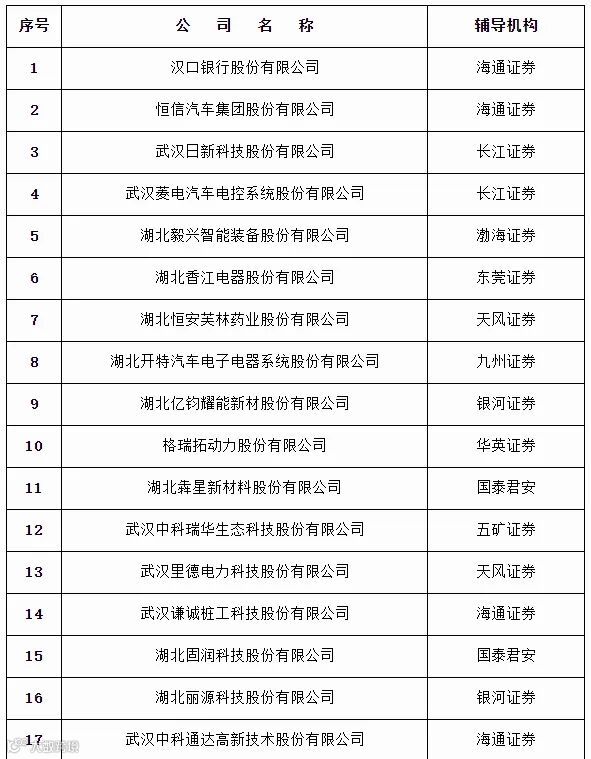 湖北辖区拟首次公开发行公司辅导工作基本情况表