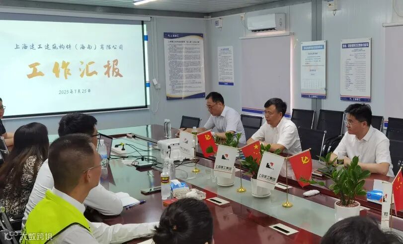 7月25日,上海建工集团党委书记、董事长徐征,党委副书记、总裁叶卫东,党委委员、副总裁、海南区域总部总裁陆峰调研上海建工建筑构件(海南)装配式建筑PC基地,并对员工进行高温慰问。上海建工集团工程总监、海南区域联合党委书记王祺国,副总经济师、总承包部党委书记、总经理张锦彬,综合事务部总经理郑双征一同调研。建材科技党委书记、董事长张越,副总裁黄继承、顾洪陪同调研。海南构件公司负责人作现场汇报。