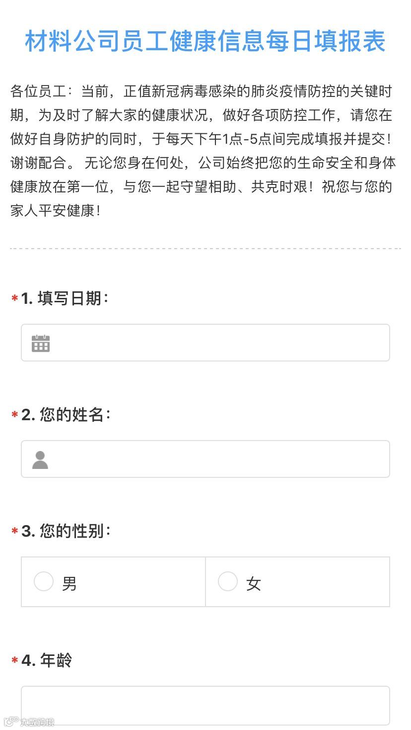 公司通过《材料公司员工健康信息每日填报表》及时了解和掌握每位员工的身体状况;严格落实来沪、返沪人员防控措施,对来自重点疫情地区的员工一律暂时不作返沪要求,何时来沪等待后续通知;涉及已从重点地区返沪、途经重点地区、有与确诊或疑似病例人员接触、有与重点地区人员接触、本人有感冒发烧咳嗽等症状的员工,均采取自行隔离14天的留观措施。