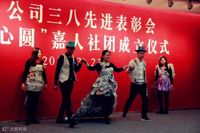 1.为了体现心意,现场颁奖时送上了女工们用围巾叠成的玫瑰花;2.公司“三八”红旗手代表杨琴伟,作为四分公司“好声音”冠军献歌一曲《阳光总在风雨后》;3.公司“三八”红旗集体代表三厂综合办用废弃材料制成衣装,表演《环保时装秀》。