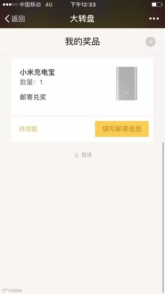 很幸运,如果你中奖了你将进入如下页面,点击黄色按钮填写信息。