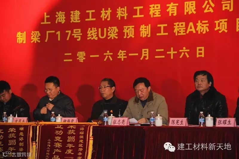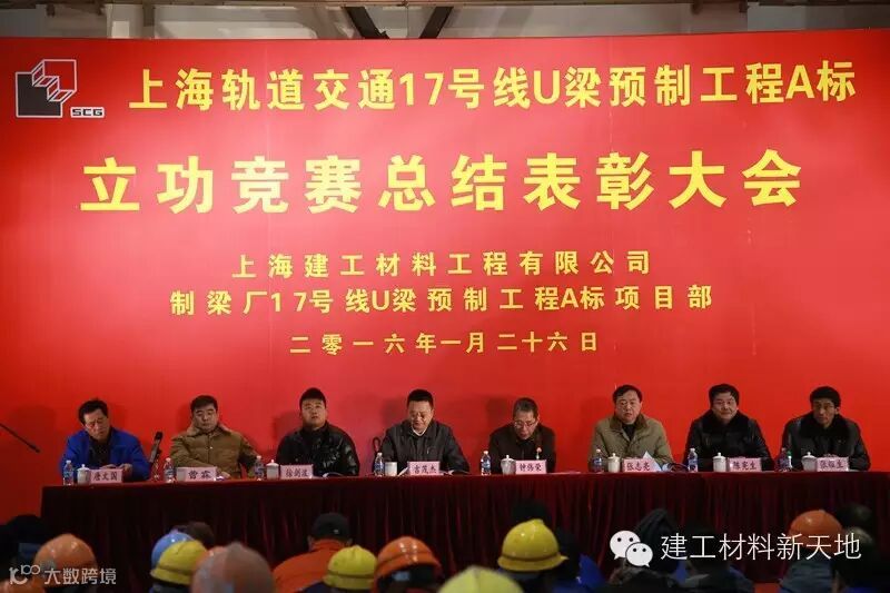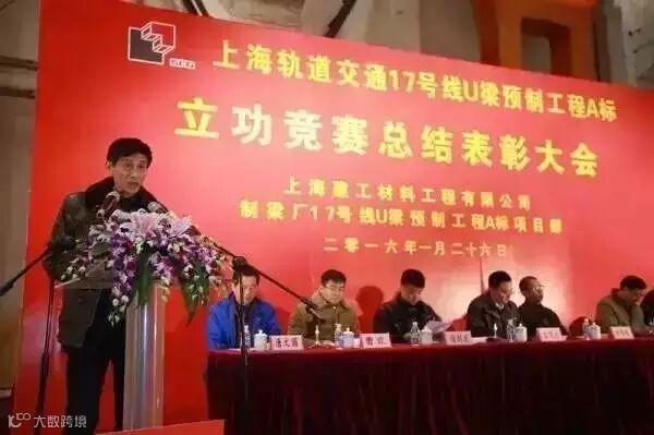 1月26日,上海轨道交通17号线U梁预制工程A标总结表彰大会在制梁厂召开,公司工会主席张志亮主持会议,公司副总经理曹霖作《立功竞赛总结表彰大会的报告》。公司副董事长钟伟荣、上海轨道交通十七号线发展有限公司副总经理吉茂杰、项目经理徐剑波、公司工会副主席陈宪生、制梁厂党支部书记张耀生以及制梁厂全体职工、分包队伍等人员出席会议。