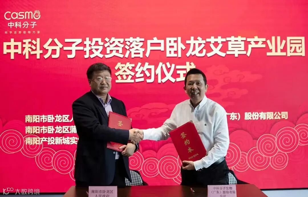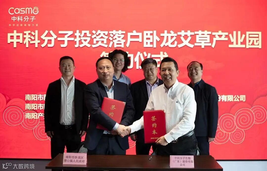 2023年2月24日,中科分子生物(广东)股份有限公司与南阳市卧龙区人民政府、南阳市卧龙区蒲山镇人民政府、南阳产投新城实业有限公司就中科分子入驻南阳卧龙艾草产业园项目达成投资合作。中科分子生物(广东)股份有限公司董事长周粤生、集团副总裁杨茗杰、营销总监苏朋、南阳市卧龙区驻珠三角招商组武军光主任、南阳市卧龙区蒲山镇党委齐冬华书记、南阳产投新城实业有限公司王新景董事长等出席了签约仪式。