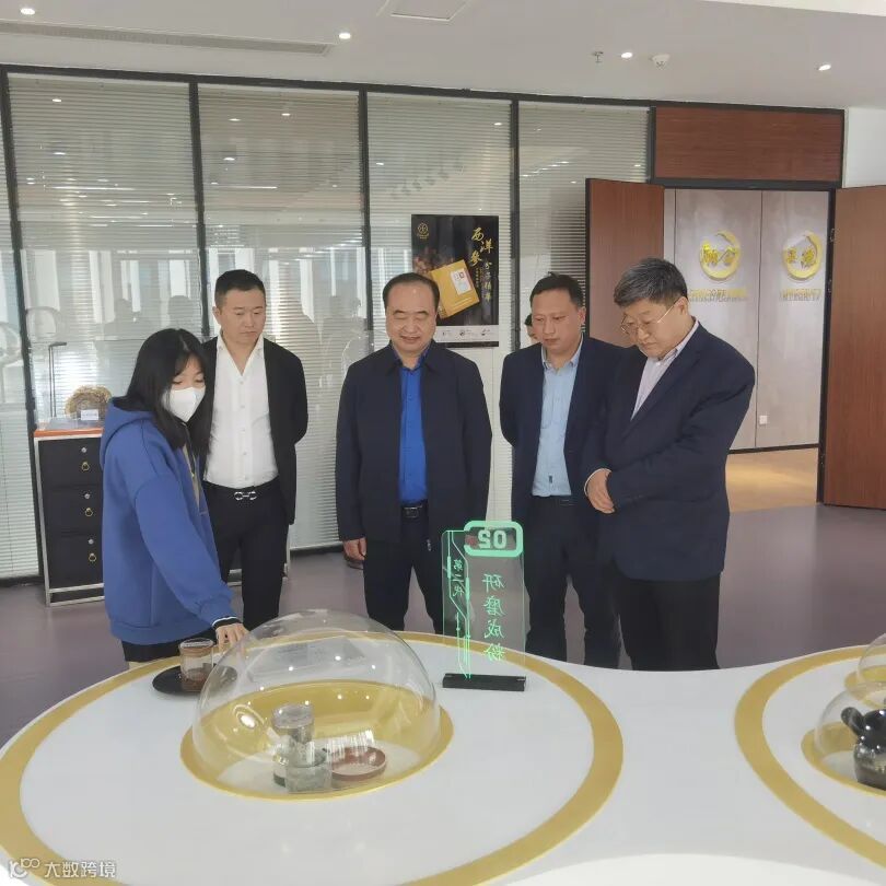 签约仪式前,南阳市卧龙区驻珠三角招商组武军光主任、南阳市卧龙区蒲山镇党委齐冬华书记、南阳产投新城实业有限公司王新景董事长等领导嘉宾还参观了中科分子公司,详细了解了公司情况及主营产品等。