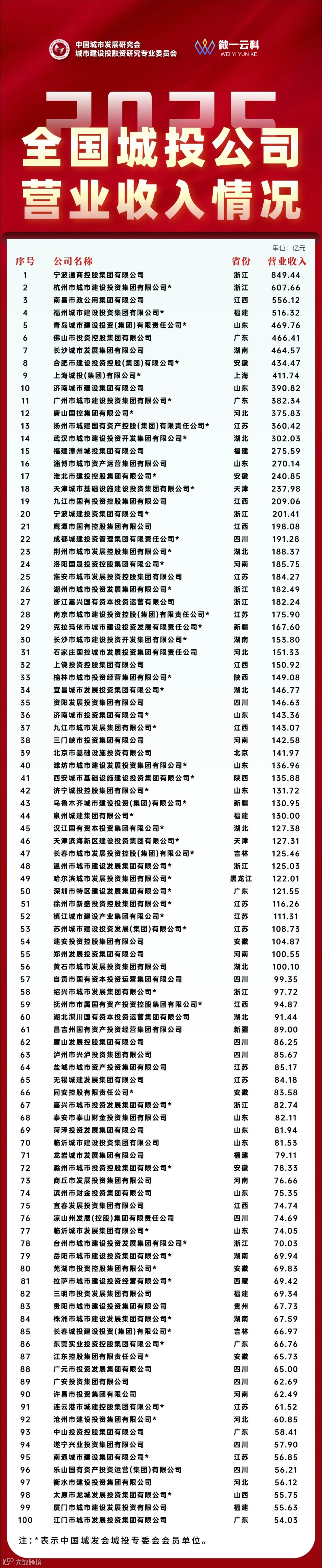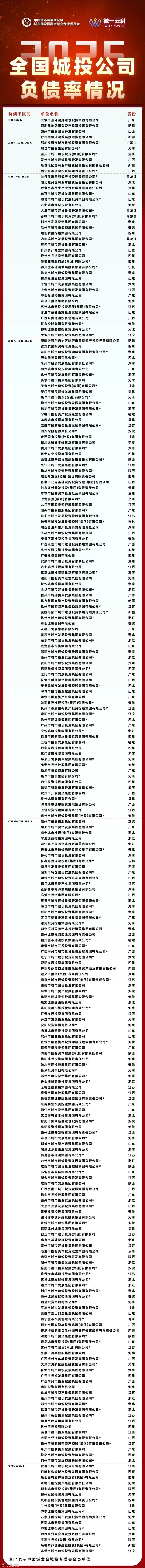 2025年5月29日,中国城市发展研究会城市建设投融资研究专业委员会(简称“中国城发会城投专委会”)委托江苏现代资产投资管理顾问有限公司,对2025全国城投公司总资产情况、2025全国城投公司营业收入情况、2025全国城投公司负债率情况及2025全国城投公司主体信用评级情况等进行梳理统计,现予以发布。此次发布,也是自2014年首次对全国城投行业相关数据指标发布以后,连续12年对外发布。