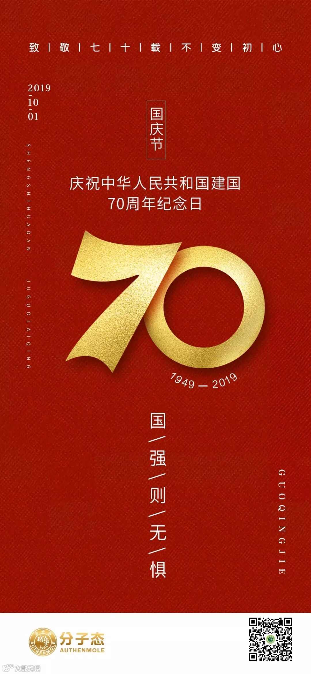 分子态热烈庆祝中华人民共和国建国70周年纪念日,不忘初心,砥砺前行!