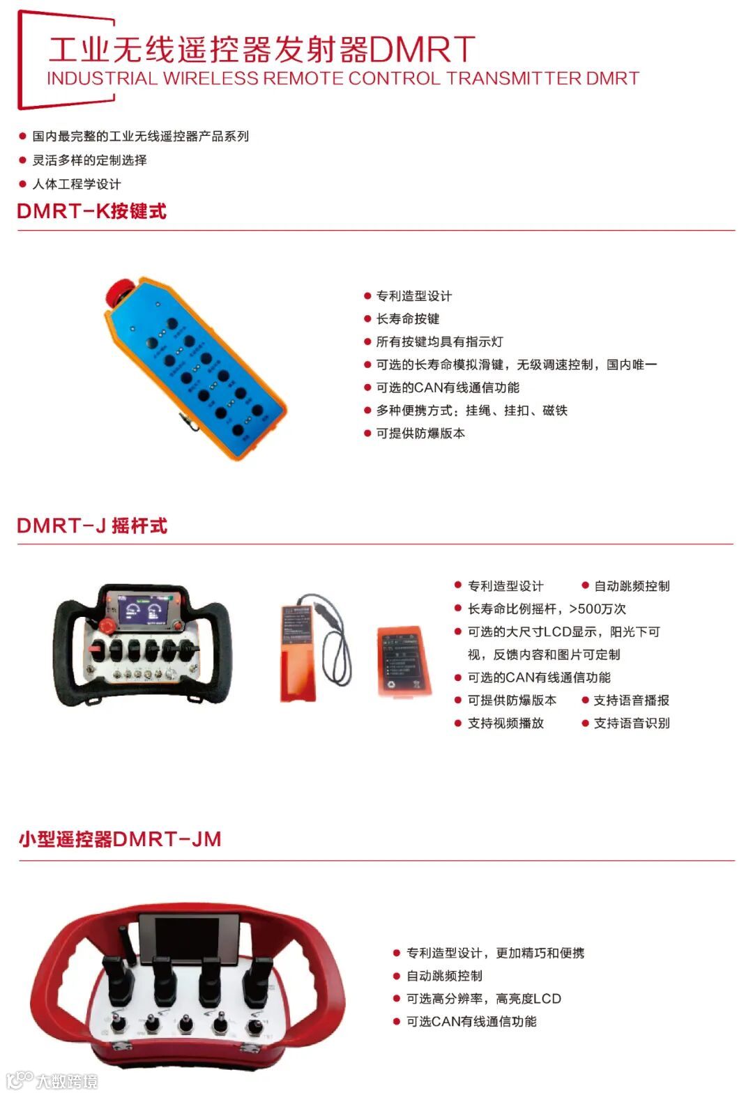 武汉杜曼智能科技有限公司于2010年在华中科技大学科技园注册成立,由武汉光谷微创新实验室孵化扶持,为东湖高新区3551高端人才企业,第五批“专精特新”企业。核心团队均具有著名高校的博士、硕士学历和著名工程机城企业的长期从业经历。公司技术实力雄厚,自成立以来,—直是国家级高新技术企业,目前已拥有各类授权专利50余项,其中发明专利6项。公司专注于工程机械和专用车辆的成套智能控制系统和工业无线遥控系统的研发、生产和销售。拥有国内最完整的工业无线遥控产品线,包括按键式、手持式和摇杆式等,推动和引领了工业无线遥控的国产化进程以及工程车辆的智能化进程,为工程机械厂家深度赋能,让其拥有和国际工程机城巨头—样甚至更专业的智能化能力和程度。数十年来,公司已经拥有了包括高空作业机械、混凝土机械、矿山机械、石油机械、起重机械、消防应急机城、农林机械、地坪研磨机械、市政环卫车辆以及军工装备、无人驾驶/AGV机器人和新能源专用车辆等几乎涵盖所有工程机械和专用车辆行业的实际应用案例和经验,在上述部分细分领域拥有极高的市场占有率和美誉度。