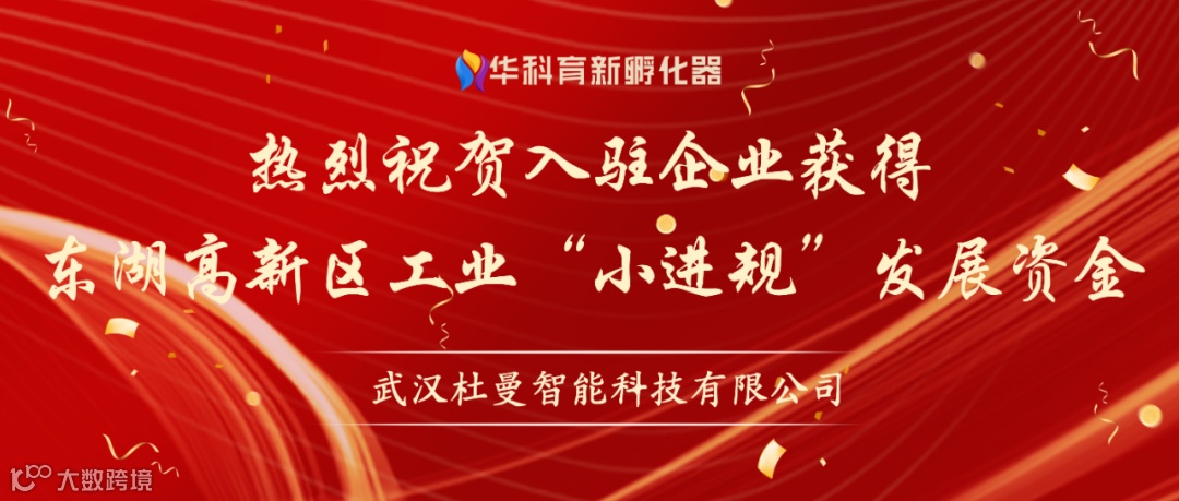 光谷微创新实验室入驻企业武汉杜曼智能科技有限公司成功获得东湖高新区2023年度工业“小进规”发展资金:
