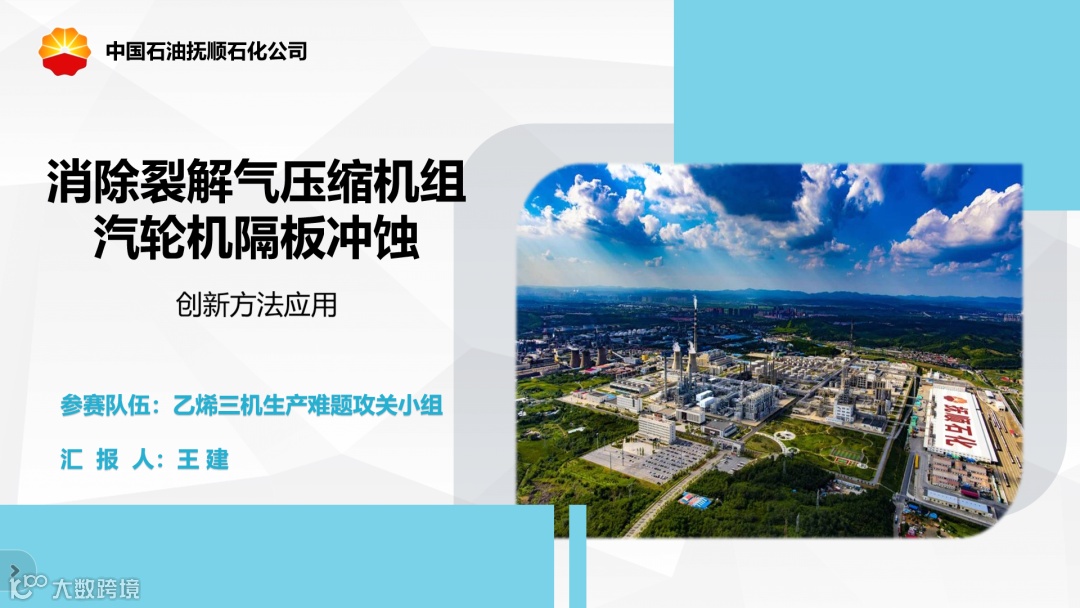 工建公司参赛项目《消除裂解气压机组汽轮机隔板冲蚀》,为2022年集团公司一线生产难题。项目攻关团队于2022年4月底成立,由集团公司技能专家王建领衔,团队共有10人,包含3名集团公司技能专家和5名专业技术人员。团队通过专利论文查询、与设备厂家及兄弟企业交流、运用TRIZ创新理论等方式对一线生产难题进行攻关。