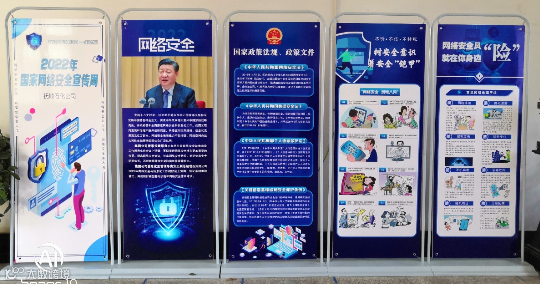 2022年9月5日至9月11日是国家网络安全宣传周,信息管理部以“网络安全为人民,网络安全靠人民”为主题,以“生活中的网络安全”为出发点,用横幅、展板、视频、铁人先锋线上答卷等多种形式,采用线上线下相结合、知识性与趣味性并重的方式生动地向公司员工展现了一幅与我们的生活、切身利益息息相关的网络安全大画卷。