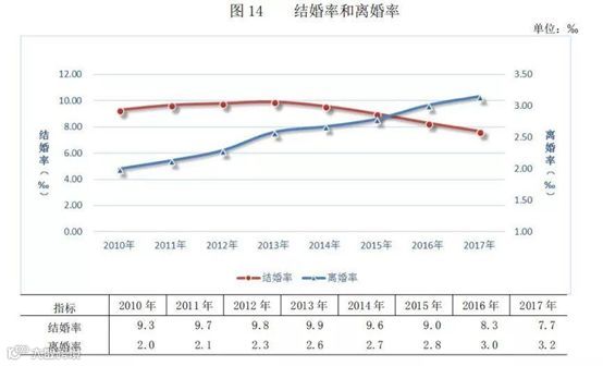 2010年至2017年,我国的离婚率正不断上升,而结婚率在2013年后不断下降!