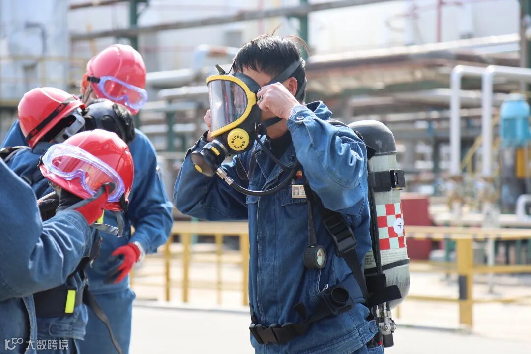 演练围绕储运车间T-701B环氧乙烷罐出口第一道法兰泄漏开展演练,涉及事件发生、应急预案启动、抢险处置、医疗救护、通信协调联络、警戒隔离、周边信息发布和环境监测等环节。