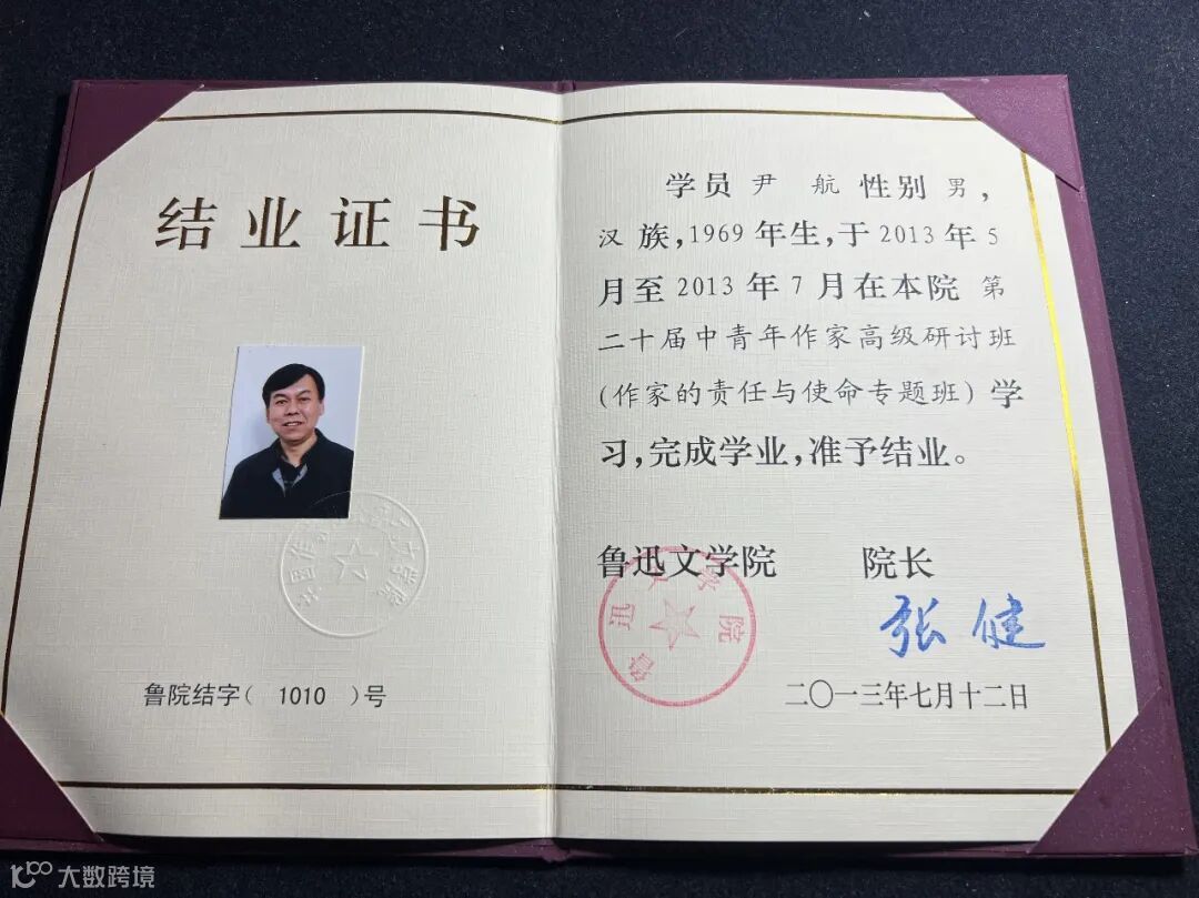 作者的鲁迅文学院校徽和结业证书