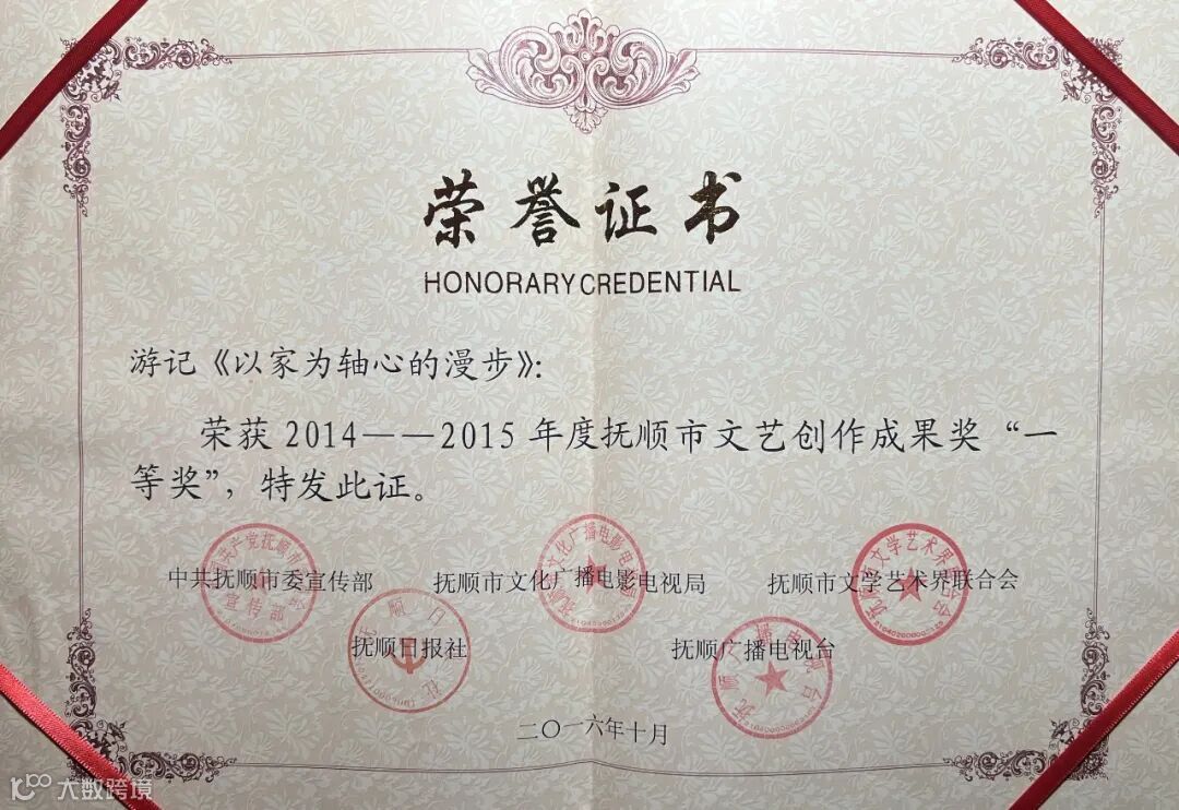 作者受到市文艺成果一等奖表彰的证书