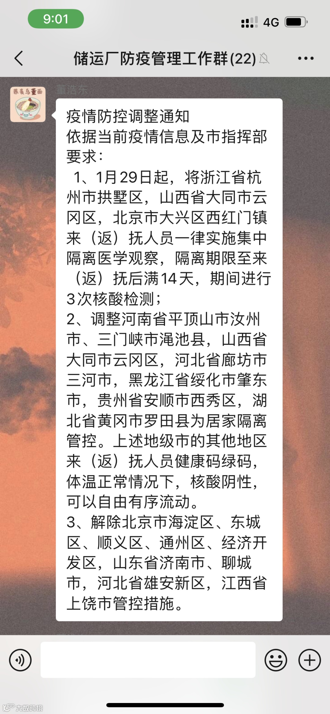 节前,针对新冠肺炎疫情在国内多地反弹,疫情防控形势严峻复杂的局面,储运厂深刻意识到节日期间疫情防控工作的特殊重要性,升级疫情防控管理,制定了严密的节日期间外出审批要求,组织员工填写《抚顺石化公司春节期间人员流动登记表》,确保春节期间每位员工和共同居住家属行程轨迹清晰、可控。春节期间,该厂每天及时向员工传达疫情变化情况和疫情风险地区信息,倡议员工少聚集、少外出,坚决守住来之不易的疫情防控成果。