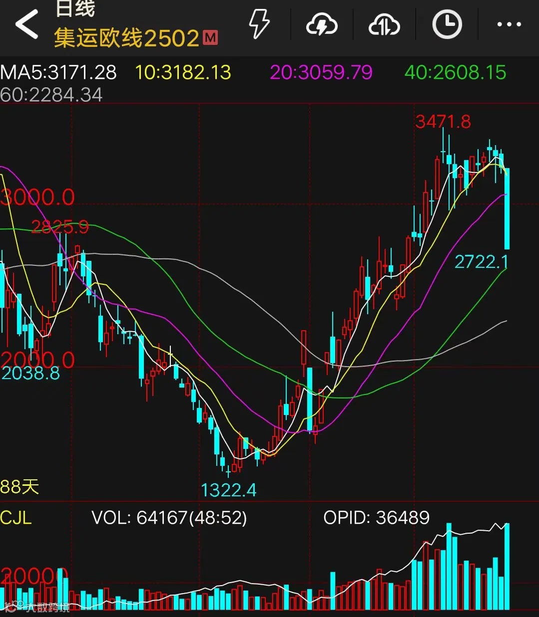 集运指数(欧线)期货主力合约跌停