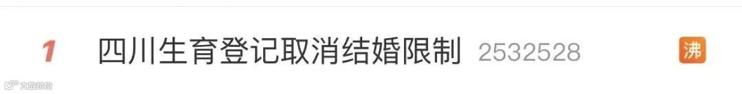 30日下午,“四川生育登记取消结婚限制”冲上热搜第一。