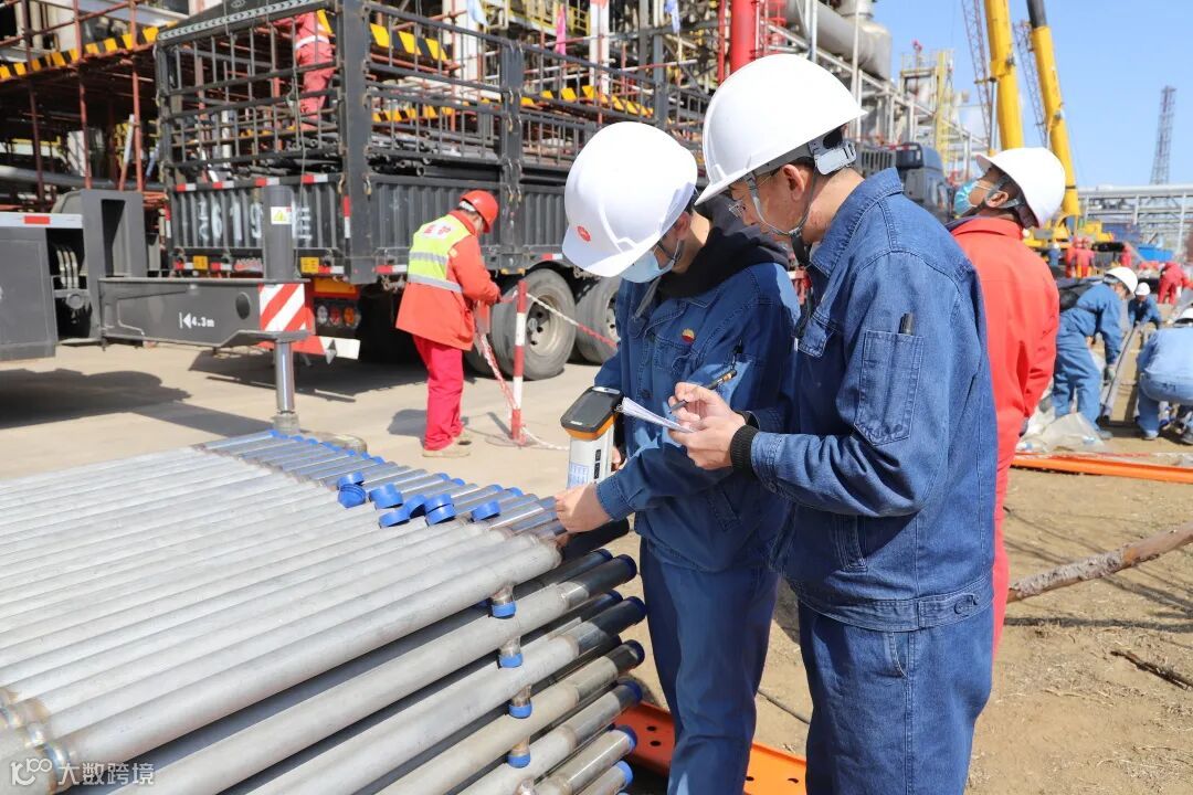 4月14日10时,设备技术公司氢损伤试验部王建忠、刘志鹏正在对烯烃厂乙烯车间乙烯裂解炉更换炉管进行光谱检测。通过光谱检测对材料化学成分进行复验,保证产品入厂质量。