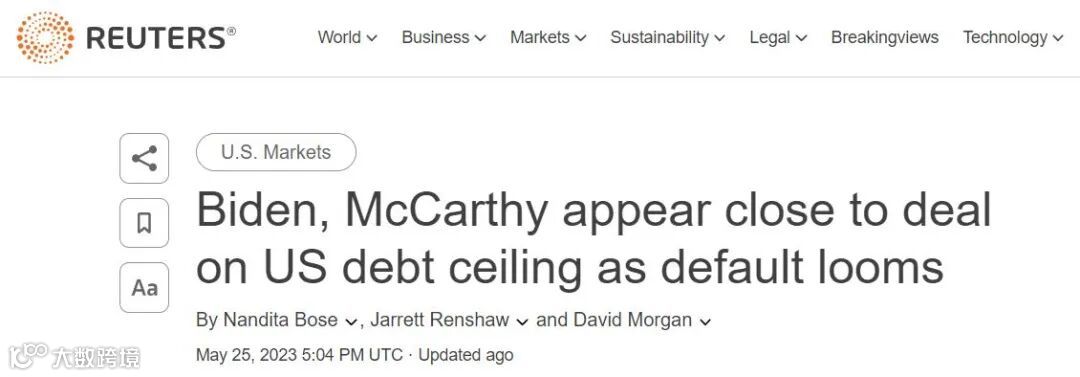 昨夜,据路透社最新报道,知情人士透露,美国总统拜登和众议院议长麦卡锡接近就美国债务上限达成协议,双方在可自由支配开支方面的分歧仅为700亿美元。