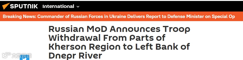 昨天深夜,据俄罗斯卫星通讯社报道,俄罗斯国防部11月9日宣布从赫尔松部分地区撤出部队,转移到第聂伯河东岸地带。