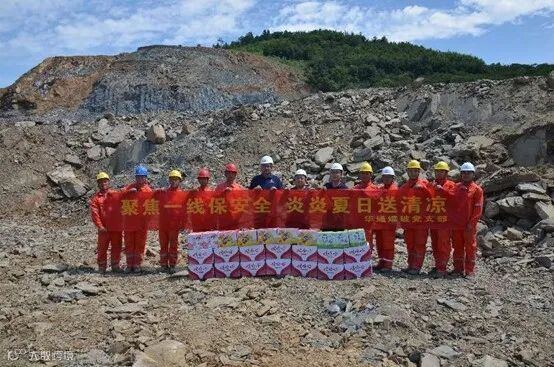 近日,华通爆破党支部组织开展“聚焦一线保安全,炎炎夏日送清凉”活动,党支部成员前往信阳新信矿业、固始白果冲水库、商城汪岗镇矿山生态修复三个作业项目,为奋战在一线的员工送去瓜果饮料、解暑药品、防晒用品等一系列清凉物资。