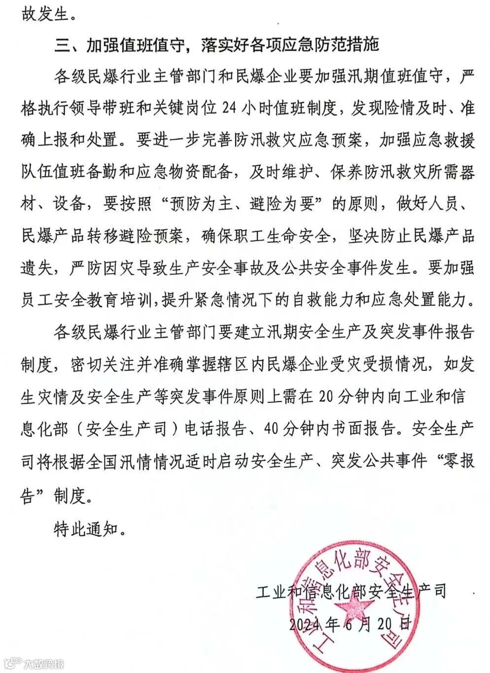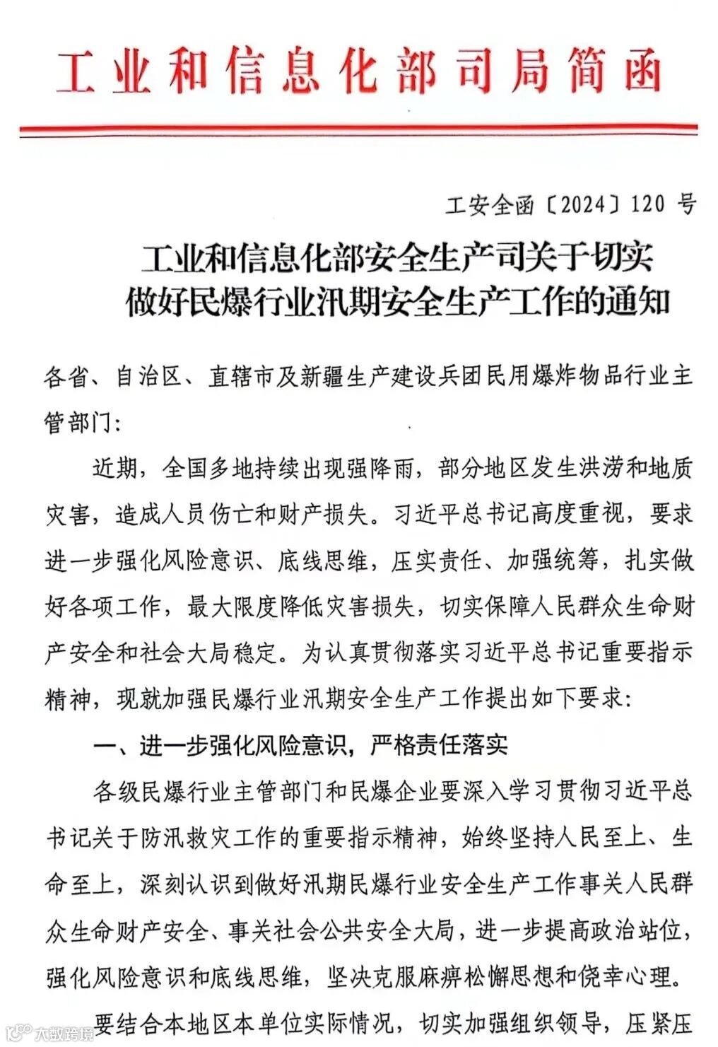 工业和信息化部安全生产司关于切实做好民爆行业汛期安全生产工作的通知