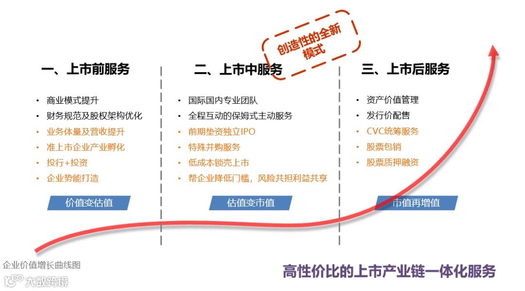 集团的上市后服务是通过资产价值管理、发行价配售、CVC统筹服务、股票质押融资等操作让企业的市场再增值。