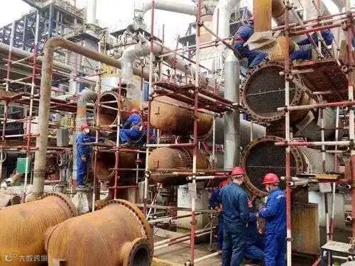 5月7日早上8点40分,在石油三厂芳烃检修现场,几名中油七建的工人正在对换热器管束进行回装施工。据了解,该厂今年检修项目总计147项,已开工147项,开工率100 %,已完工65项,完工率44%。【陈明阳】