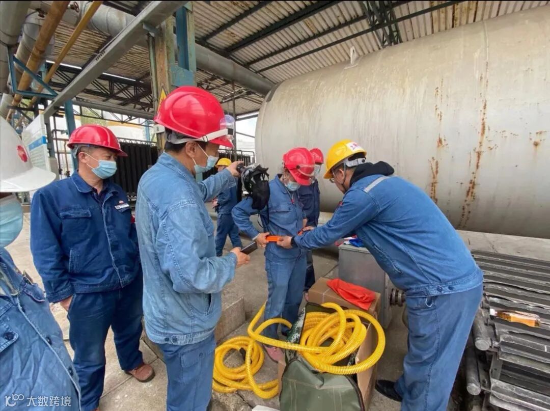 5月1日13:50,上海博柯安全检查人员来洗化厂空分车间进行长管呼吸器佩戴指导。【李知然】