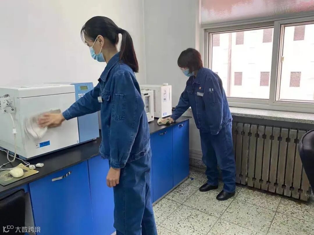 质检车间志愿者擦拭量热仪