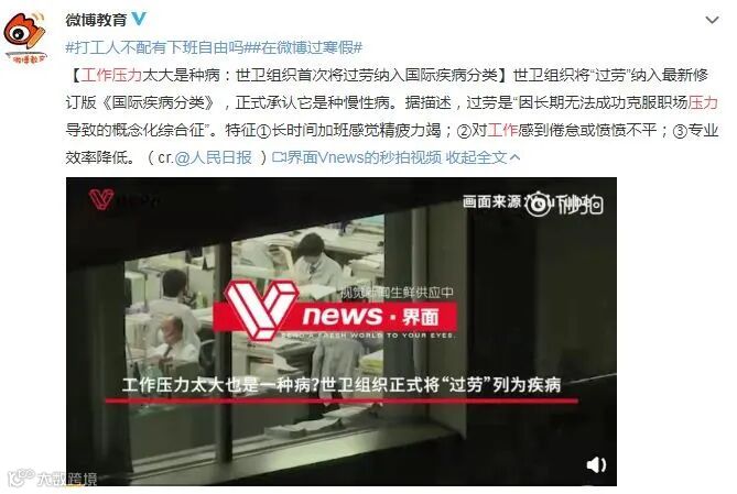 世卫组织首次将过劳纳入国际疾病分类