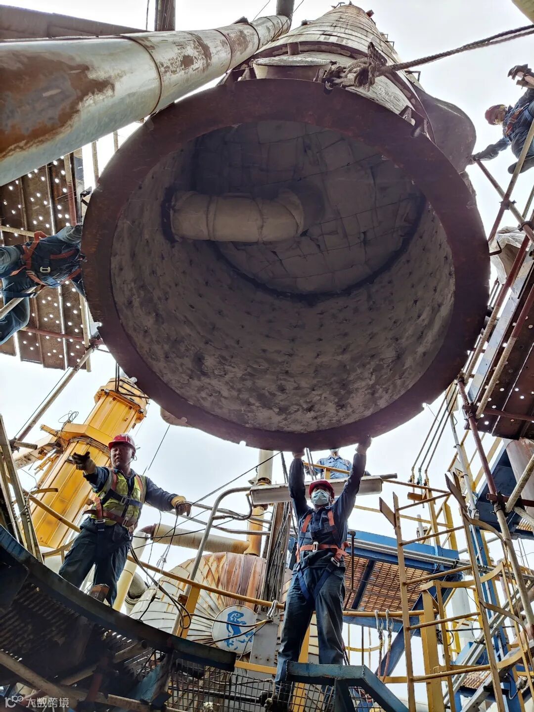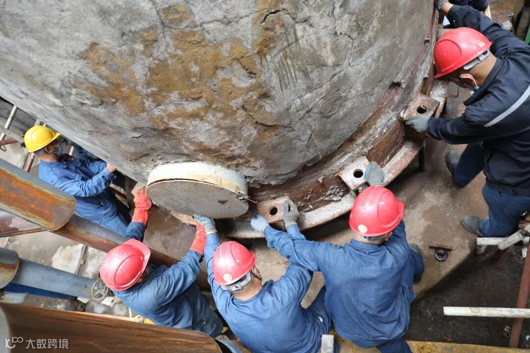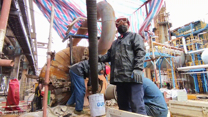 为了确保作业安全,检修人员倒班作业,每组人员在设备内施工40分钟就进行轮换。经过三天紧张施工,他们将全部45层塔盘拆除完毕,并清理了1240袋、共计31吨的氟化物残渣。