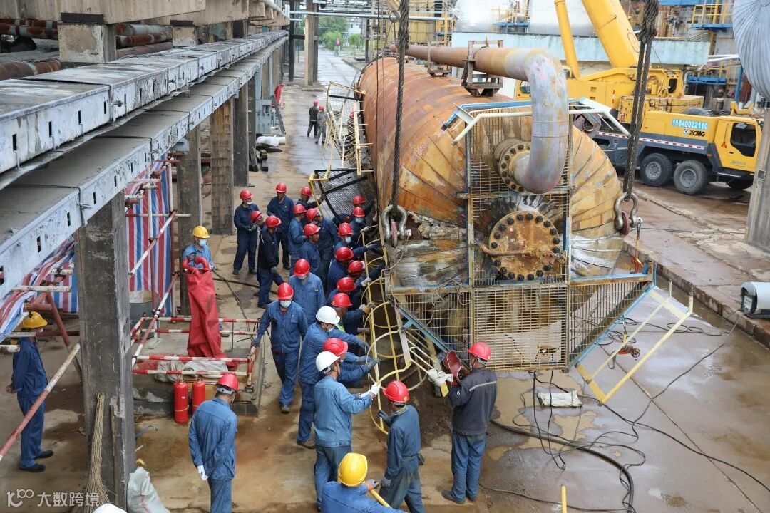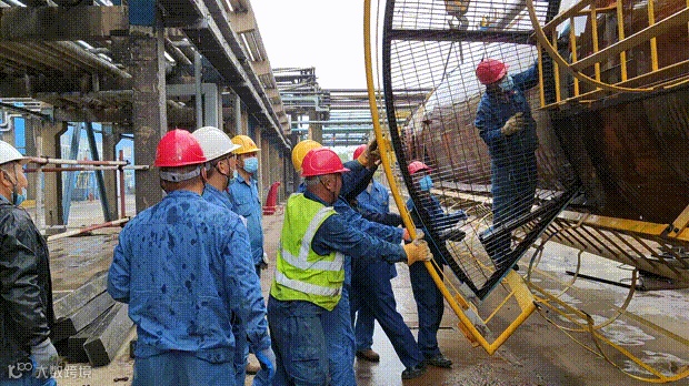 为确保将设备及时交付生产,他们在塔盘回装时再次倒班作业,24小时不间断施工,仅用时两天就完成塔盘回装任务。6月2日设备复位吊装时,天空突降大雨,施工人员分秒必争,在大雨中完成爬梯及平台安装工作,并一气呵成完成吊装作业。