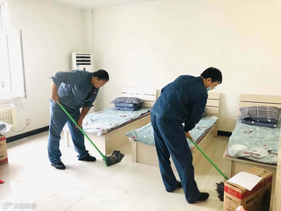 车间书记任丽萍带队整理休息室床单被罩