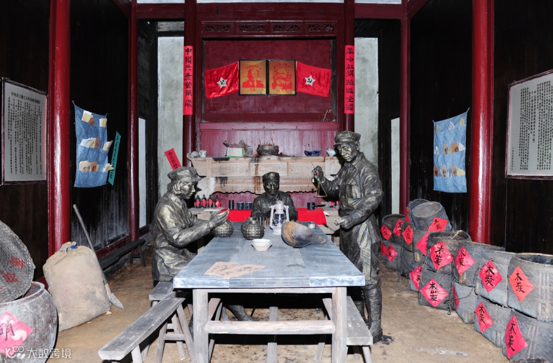 在中央红军兵工厂一处旧址的普通房屋内,3名匠人伏案工作。他们神情专注,有的在测量火药重量,有的在装填火药……这3座塑像生动还原了昔日官田兵工厂工人制造地雷的场景。