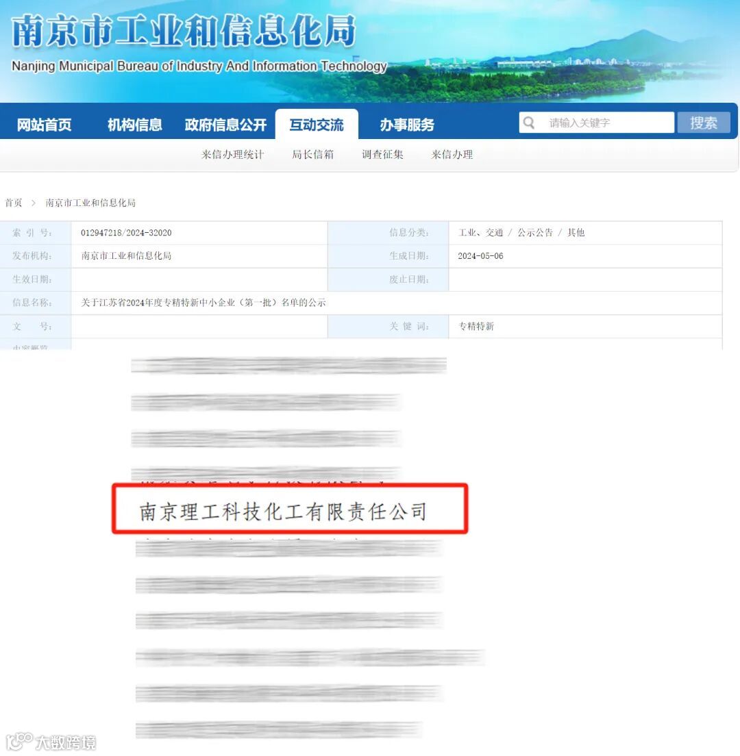 近日,南京市工业和信息化局发布了《关于江苏省2024年度专精特新中小企业(第一批)名单的公示》,南京理工科技化工有限责任公司从众多申报企业中脱颖而出,成功获评2024年省级专精特新中小企业。