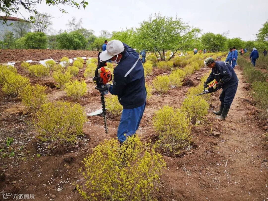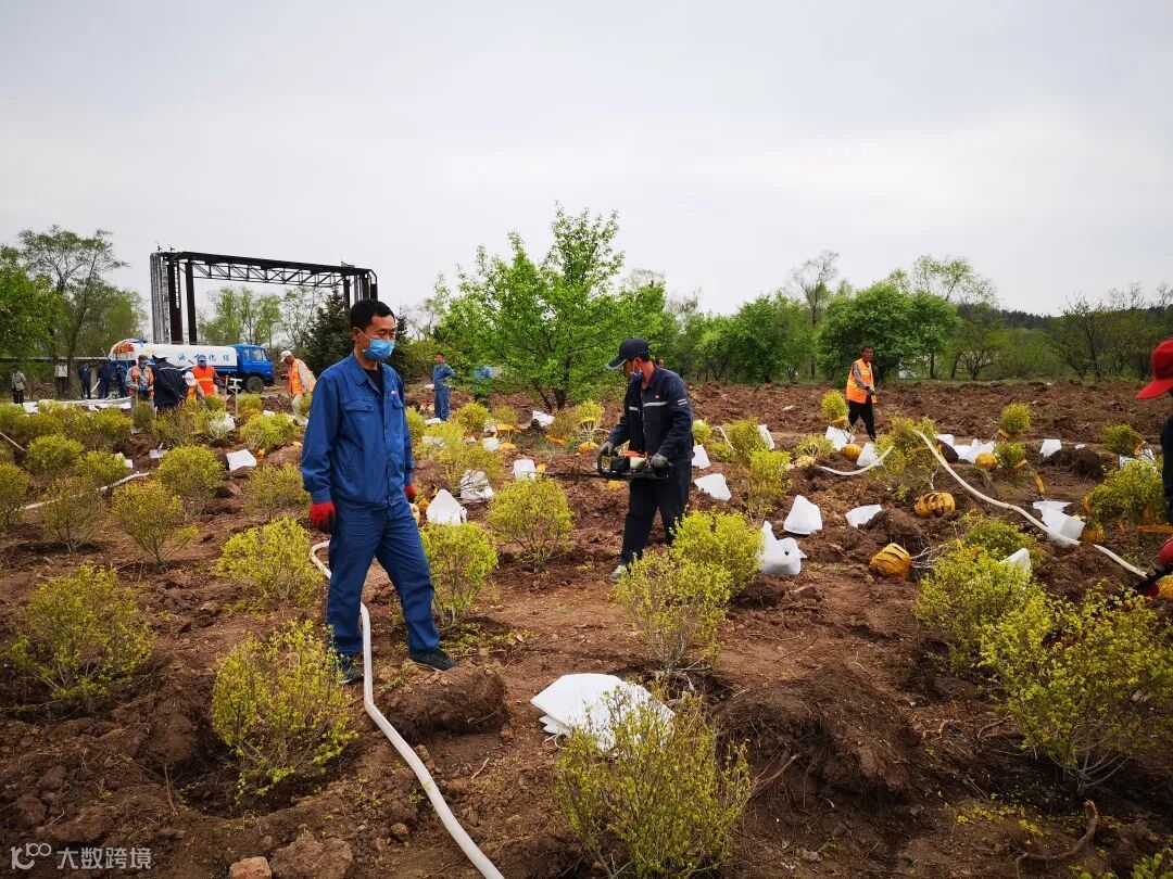 大家密切配合、各司其职,不怕脏、不怕累,合理有序地种植苗木,并及时对新种苗木进行扶植、修剪、浇水。