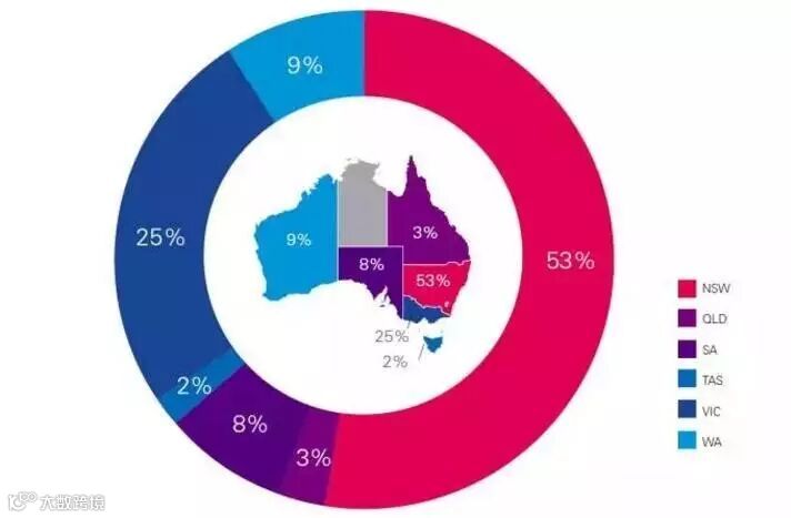 2016中国企业对澳直接投资在各州的分布