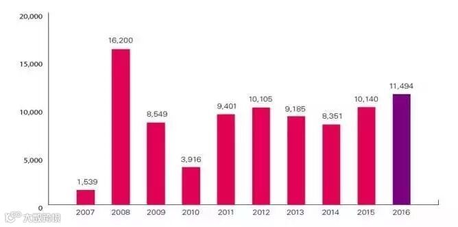 2016年,中国企业在基础设施领域的投资达到43.4亿澳元,创下历史新高,这主要得益于Asciano和墨尔本港的两大交易。农业领域的投资,在2015年只有3.75亿澳元,2016年则超过了12亿澳元,达到了有史以来最大的规模。能源类投资达到11.5亿澳元,医疗行业的投资达到13.5亿澳元,依然强劲。