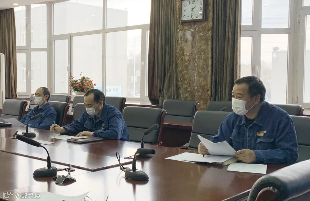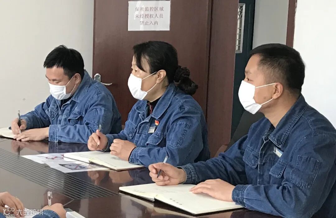 厂工会干事卢鑫(右一)传达相关文件