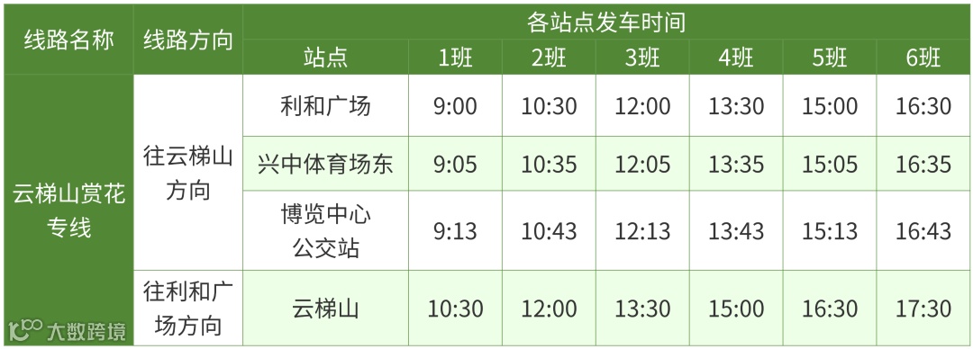 图为云梯山赏花专线运行时刻表