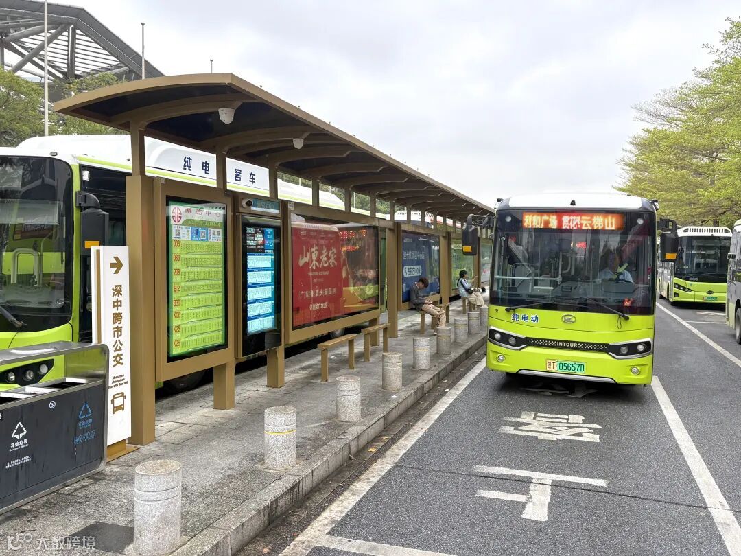 图为云梯山赏花专线车停靠博览中心公交站上车点